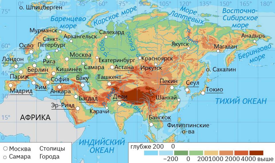 - Физическая карта мира с упрощенным изображением материков